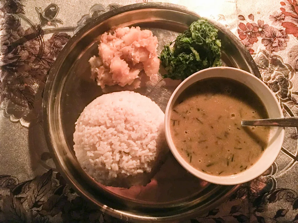 So it took us quite long before we reached Lama Hotel, a relaxed Inn, located in the middle of natural vegetation.Thus our tired bodies lernt the hospitality of the lodge and its rustic setting.There was also the signal of an engulfing bland comfort when we felt surrounded by towering hills.Having been born and raised in this area, Puran ensured that we were at ease and thus enjoyed the basic and tranquil feel of our mountain dwelling.