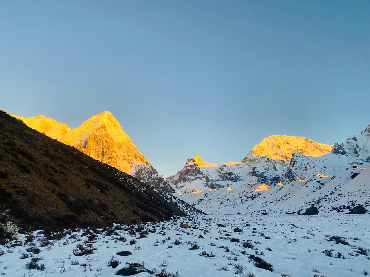 Reaching Ramche, tucked away at 4615 meters, is a major turning point on your Kanchenjunga journey. The village serves as a base for additional exploration of the area and is a distant outpost equipped with basic amenities. Trekkers can see unmatched vistas of famous peaks like Yalung Kang and Kanchenjunga from Ramche. High-altitude flora peppers the virgin environment, bringing some color to the otherwise harsh alpine settings. As they adjust to the higher altitude and get ready for the challenges that lie ahead on this enthralling and difficult trekking route, hikers can enjoy the stunning surroundings and capture the grandeur of the Himalayas.
