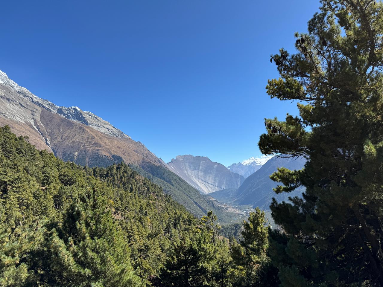 Set out on an exquisite journey along the Annapurna Circuit trek to the charming settlement of Chame (2670m), tucked away from the alpine village of Manang (3540m). Trekkers can enjoy amazing views of the surrounding peaks and beautiful valleys during the five to six-hour journey from Manang to Chame. Trekkers pass through a variety of environments as they descend from the high-altitude topography of Manang, such as pine forests, terraced fields, and rocky pathways.